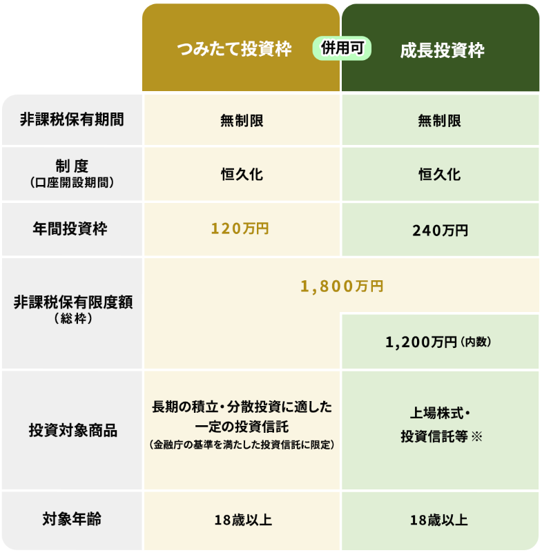 NISAの投資枠には「つみたて投資枠」と「成長投資枠」があり、併用可能です。それぞれ投資対象商品や年間投資枠の違いがあります。