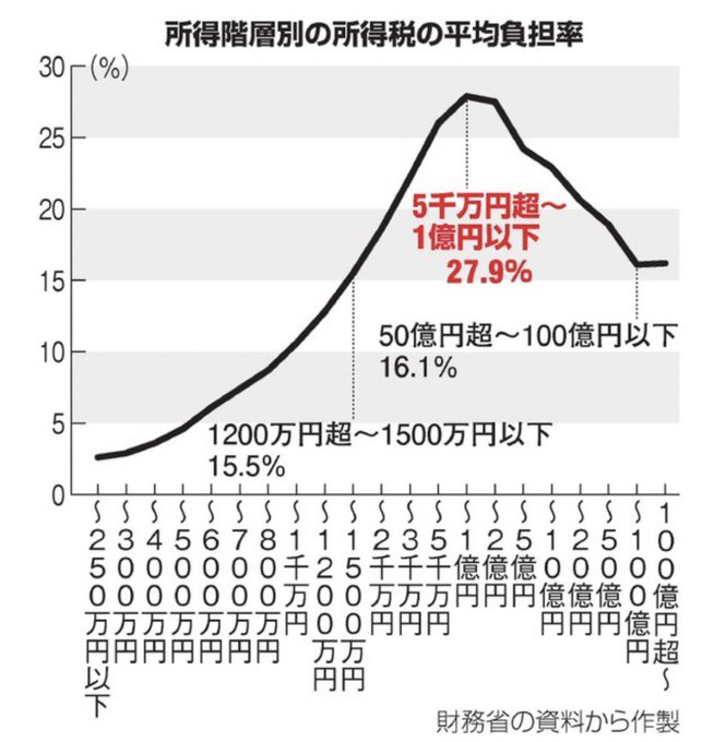出典:朝日新聞|格差是正、「1億円の壁」破るか 所得税負担率カーブの頂点、総裁選で注目